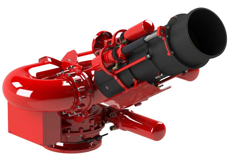POK® continue avec succès ses essais sur un nouveau type de monitor télécommandée de très grande capacité. Cette dernière avec un débit de 20 000 litres par minute est en bronze.
