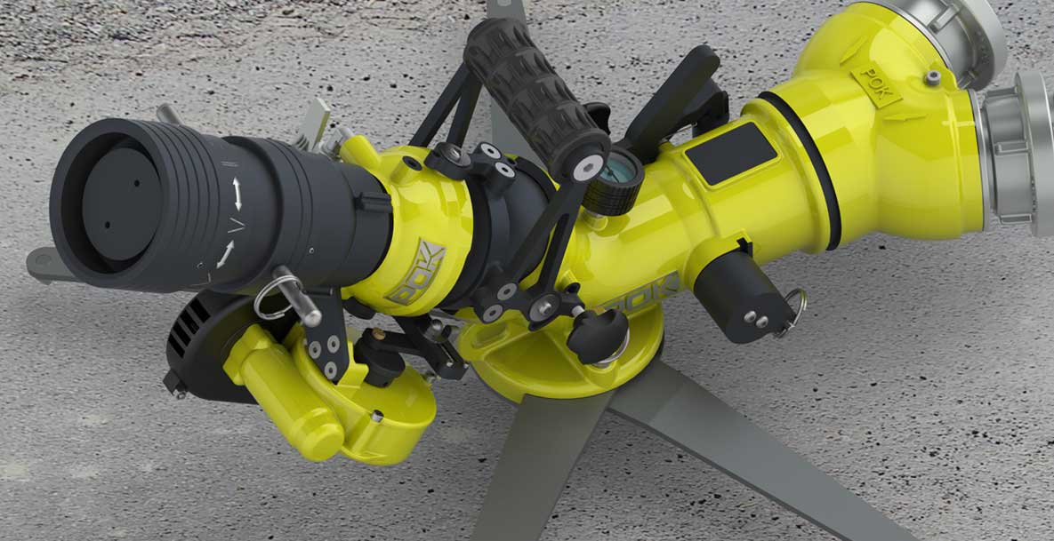 La dernière génération de lances monitors POK s’appelle Montmirail. Elle offre des caractéristiques jusqu’à ce jour jamais vues sur ce type de lance : poids avec tête et collecteur moins de 14 kg, ce qui en fait le matériel le plus léger sur le marché.